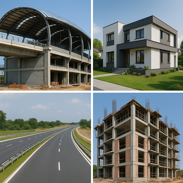 They’re used in roads, bridges, housing, commercial buildings, and public utilities.